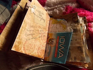 here is my personal junk journal. I travel with husband he is over the road truck driver. We go everywhere so I collect maps, pennies buttons anything I find I put in my junk journal .Ha Just wanted to share how I use mine if anyone is interested in making one.